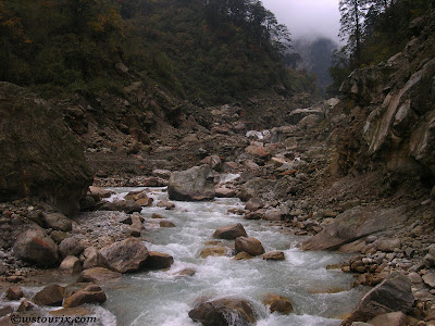 The first section of the valley is a narrow passage that almost yearly changes through sudden floods. Sometimes, the path – only used by local poachers and lumberjacks – is hard to find due to a lack of footprints. If you stand in front of a waterfall or some huge boulders with no way over or along, then you know that you have obviously missed the right turn-off leading up to anywhere through the shrubbery.